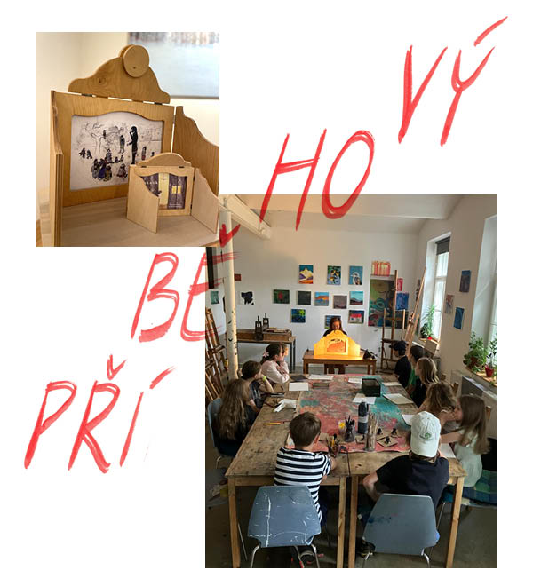 Sraz bude vždy ráno i odpoledne v ateliéru. Příchody 8:30–9:00 a vyzvedávání 16:00–16:30. Na závěr – v pátek v 15:30 – bude v ateliéru pro rodiče a přátelé dětí připravena výstava.