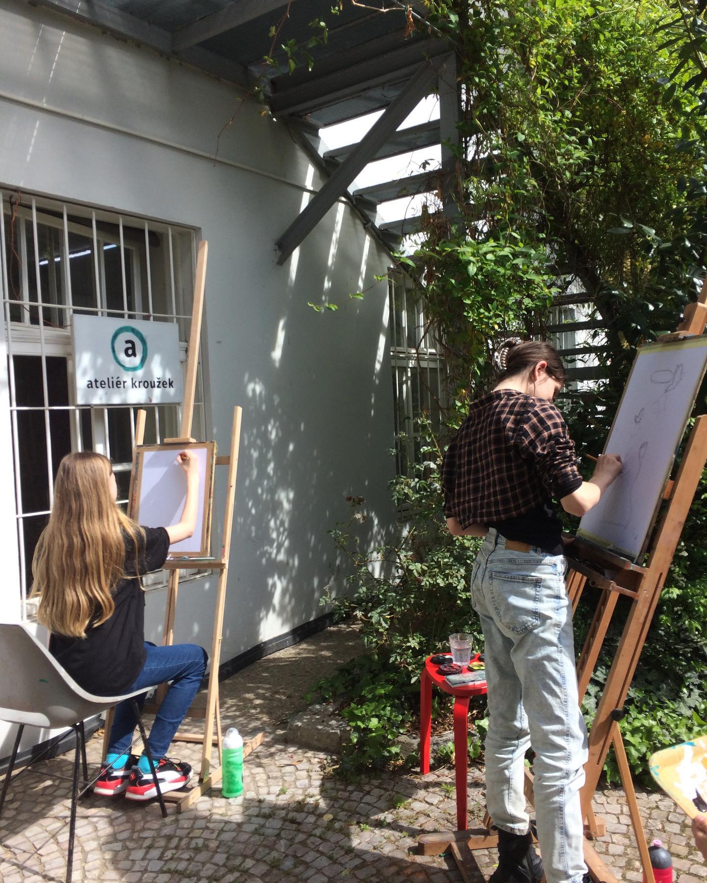Tvořit budeme v ateliéru a na dvorku. Jako přestávky v tvorbě a pro sbírání inspirace si uděláme procházky po okolních parcích nebo na výstavu do galerie
