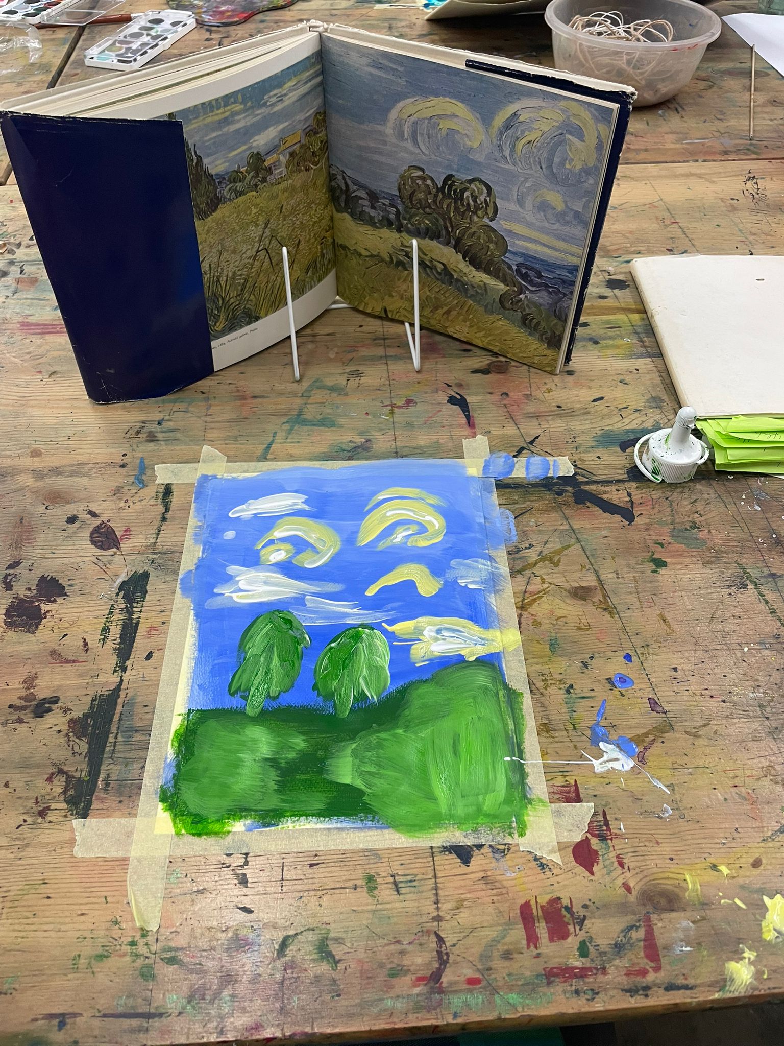 Konkrétně máme v plánu vyrazit cca 3–4× na celodenní výlet, kde můžeme tvořit v krásném prostředí na čerstvém vzduchu tedy v plenéru. Na výletech můžeme více pracovat s opravdovou přírodou, proto se tam věnujeme například land artu a přírodou se hodně inspirujeme.