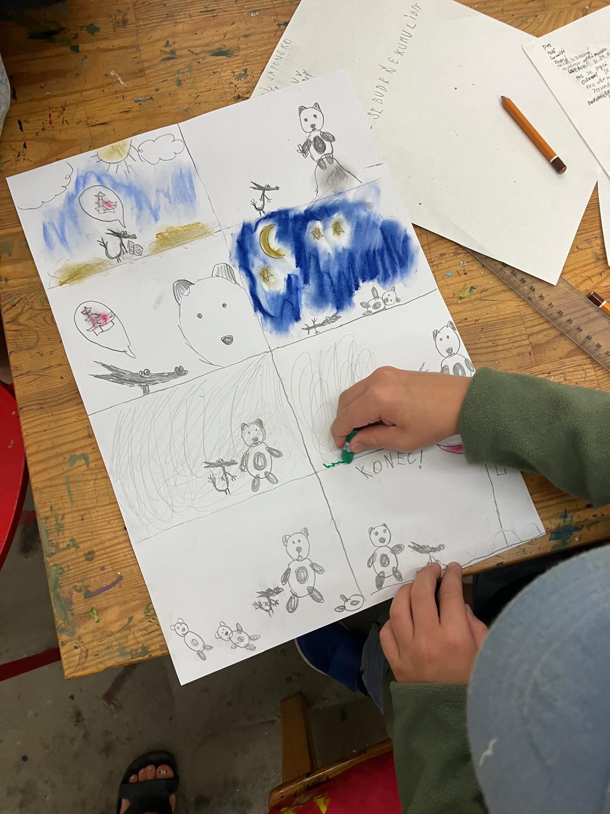 Během tohoto příměstského tábora si vyzkoušíme různé způsoby výtvarného ztvárnění příběhu, jako jsou komiks, ilustrace nebo Kamishibai, což je stará vyprávěcí technika z Japonska se kterou se během tábora seznámíme.